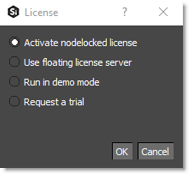 3 Select Activate nodelock license in the License window and click OK.
