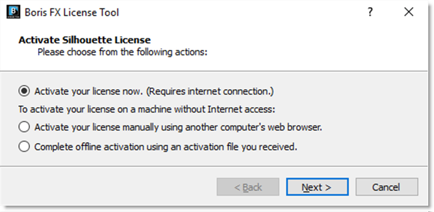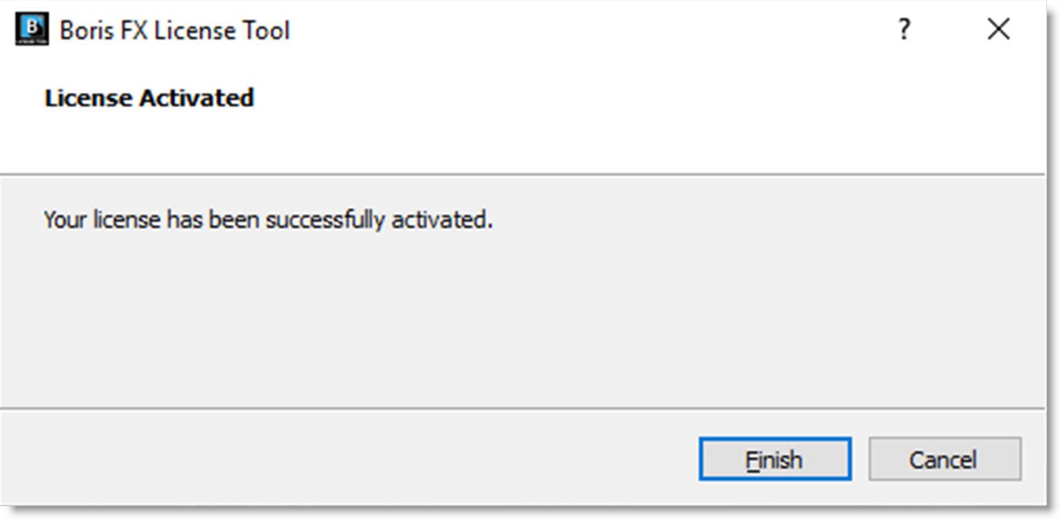 The Boris FX License Tool will load.