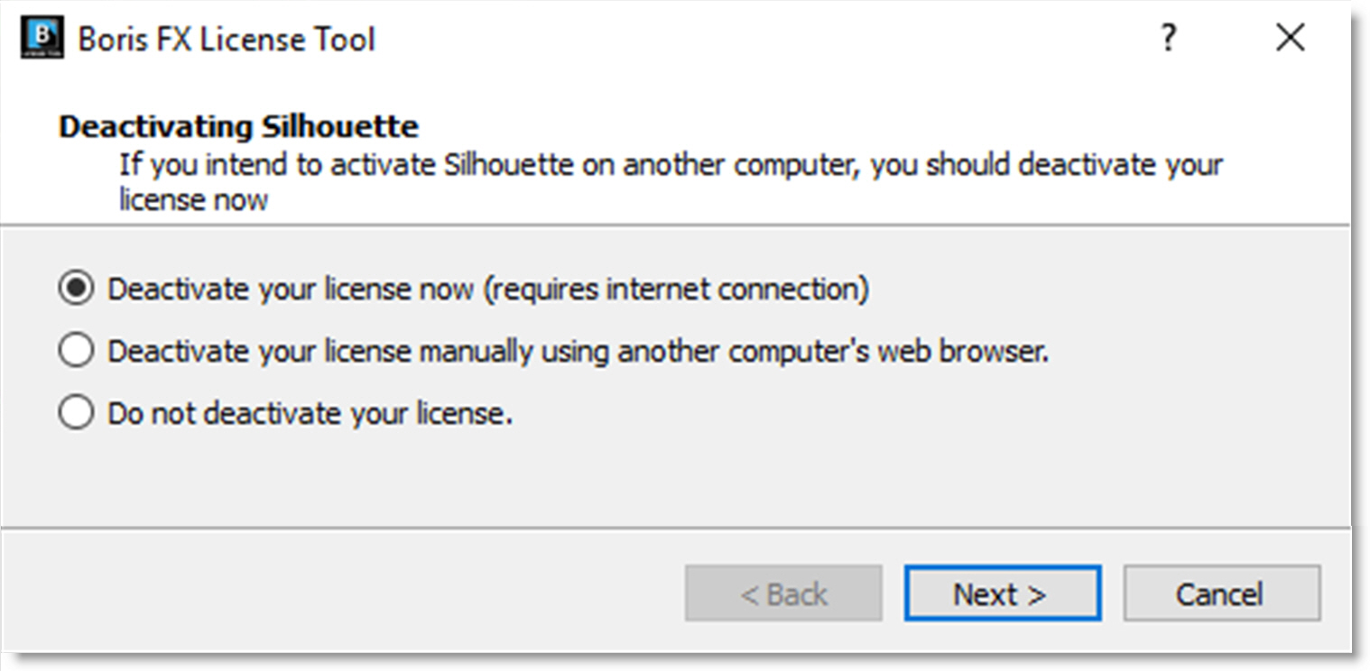 Once Silhouette has been activated, you can access the deactivate option by selecting the Help > License menu.