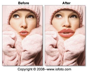 The barrier shape has successfully pinned down the image outside of its boundaries. Notice in the image on the right, the model's lips have clearly extended over her coat and the coat did not move.