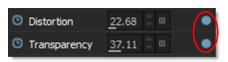By default, shapes and layers inherit their Distortion and Transparency from the Morph node settings. To “override” the value at the layer or shape, click the Override icon (dot) to the right of the numeric field and the parameter will override the parent.