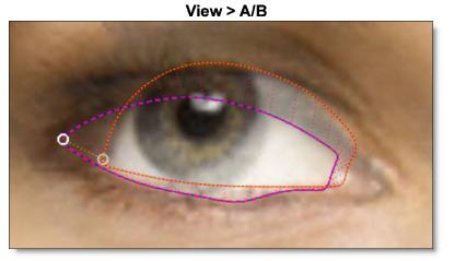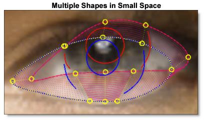 Let’s break down a complex use of correspondence points that gives the best possible results. Sophisticated correspondence point placement is especially necessary when there are multiple shapes in a small space, for instance where the eye outline is in close proximity to outlines for the iris and pupil.