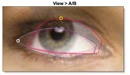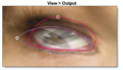 The last example shows how the relationship between the outline of each iris is maintained relative to the eye surround. These correspondence points are extremely important. The outline of each iris ends before it touches the eye surround. This is because the position of the iris outline is going to slide relatively against the eye surround. By not overlapping the iris outline and the eye surround, you are giving the image a little room to stretch without folding.