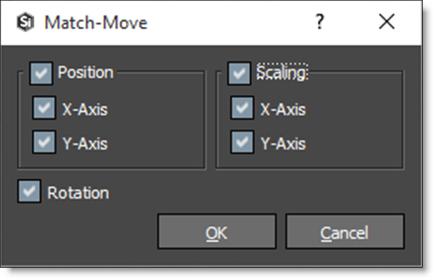 Selecting the Apply button opens the Match Move window where you determine how the tracking data will be applied.
