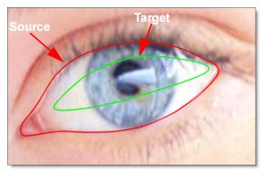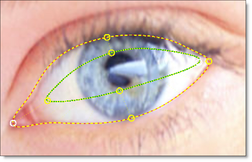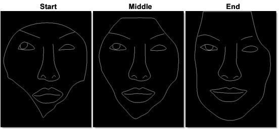 For instance, the shapes for the eyes in the source image are joined to the shape for the eyes in the target image, mouth shapes to mouth shapes, nose shapes to nose shapes--you get the idea.
