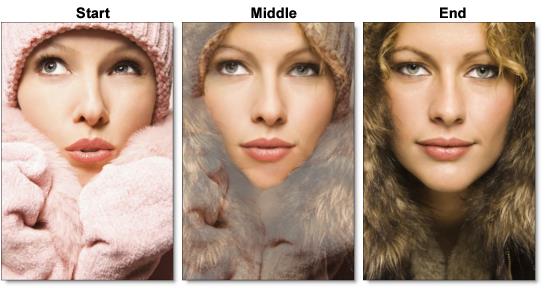 Image morphing can take place on stills as well as moving images. Morphing has been traditionally used to transform one object or person into another and more recently to seamlessly transform a live action element into a CG (computer generated) object and vice versa.