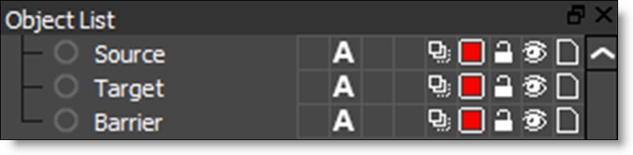 7 In the Object List, arrange the barrier shape to be below the source and target shapes.