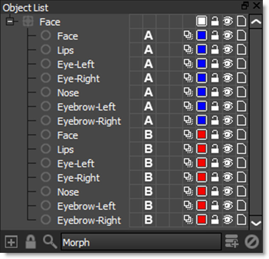 Object List 2 now only displays right view objects for a stereo project or B side objects for a morph project.