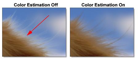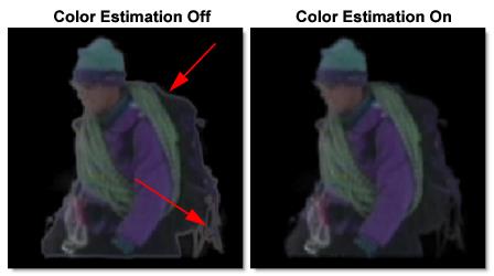 Note: Color Estimation can cause color flickering in edge areas of partial opacity if your shape position is not consistent from frame to frame or if your source footage is grainy. Disable Color Estimation if you see flickering in the edge areas.