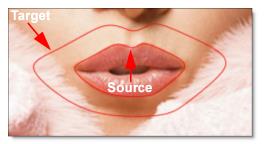 The Distortion parameter warps the image from the source to the target shape.