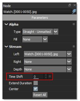 2 Drag the Time Shift numeric field to the desired frame or enter a value by clicking on the number.