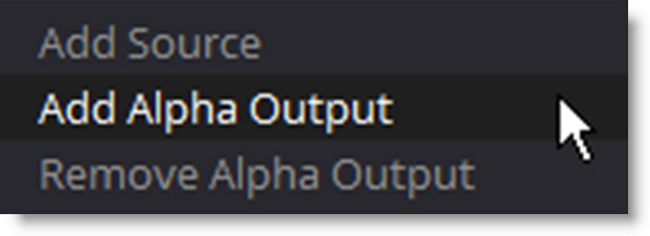 3 Right-click an empty area of the Node Editor and choose Add Alpha Output to reveal the Node Tree output on the right.