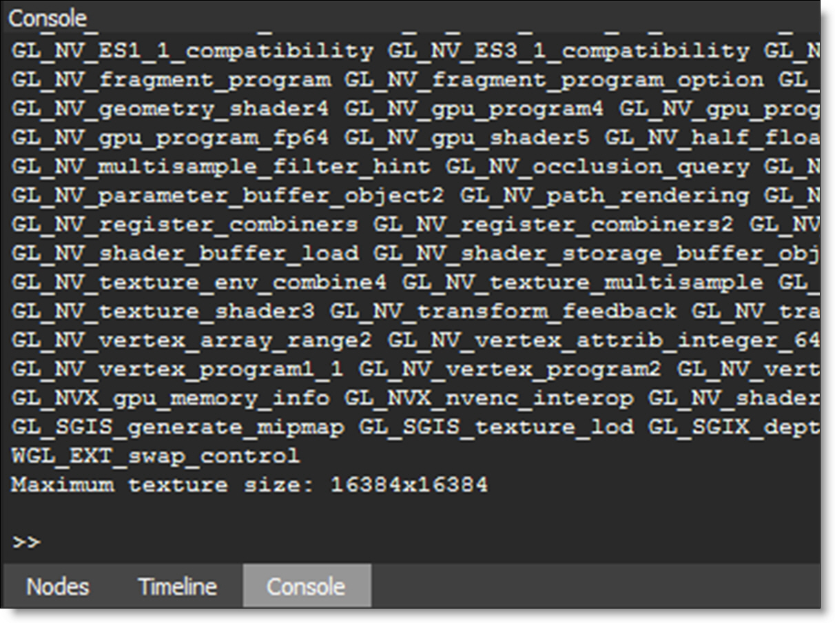The Console is located in a tab in the Timeline area. It displays the various modules loaded by Silhouette as well as information about your machine. The Console information can be cut, copied or pasted and we may ask you for its contents when providing customer support.