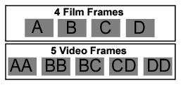 We can fully reconstruct our original four film frames by extracting the field data from the five video frames. Here comes the odd bit. When you receive your footage, it has probably been edited, so it is not necessarily the case that frames three and four are the mixed frames because all of the clips have been shifted around in the edit. We therefore need to figure out what the first frame is before we attempt to remove the extra fields. To do this, you would go to the first five frames in the clip. If the first frame to have field blending is frame three, you know your first frame should be set to AA. If the first frame to have field blending is frame two, then you know your first frame is BB. You would then set your 3:2 parameter accordingly. If your first frames are a solid color and you can't figure it out, you have to jump to a time range of frames that display the blending and start guessing what the first frame is until the fields go away. Very scientific, isn’t it?